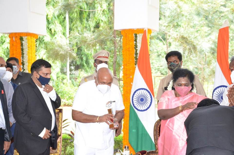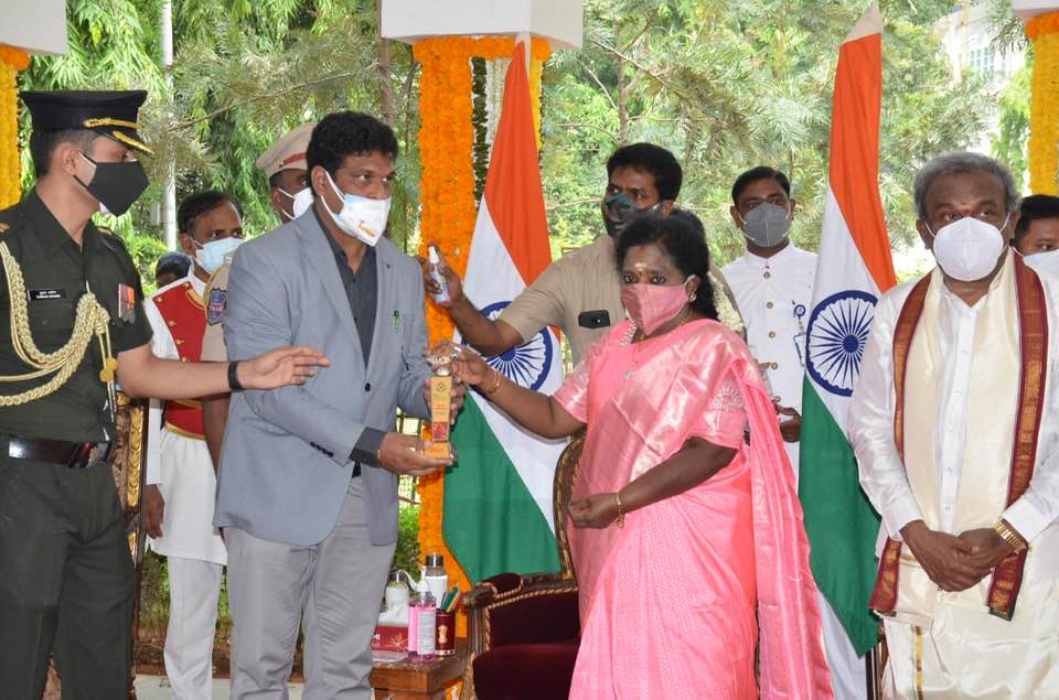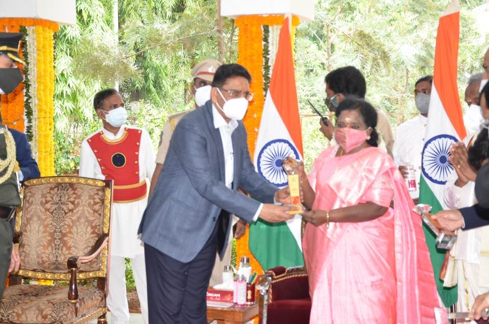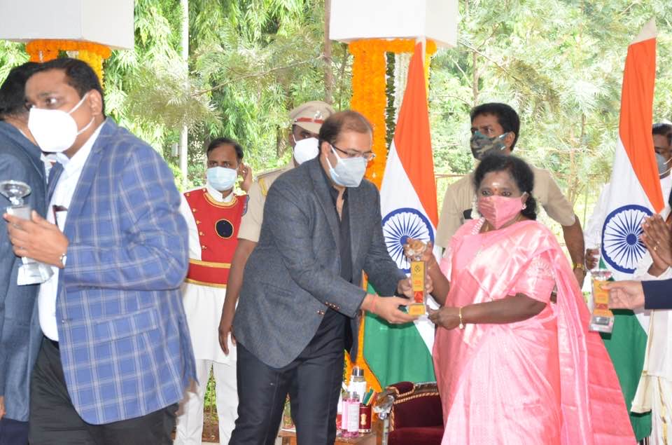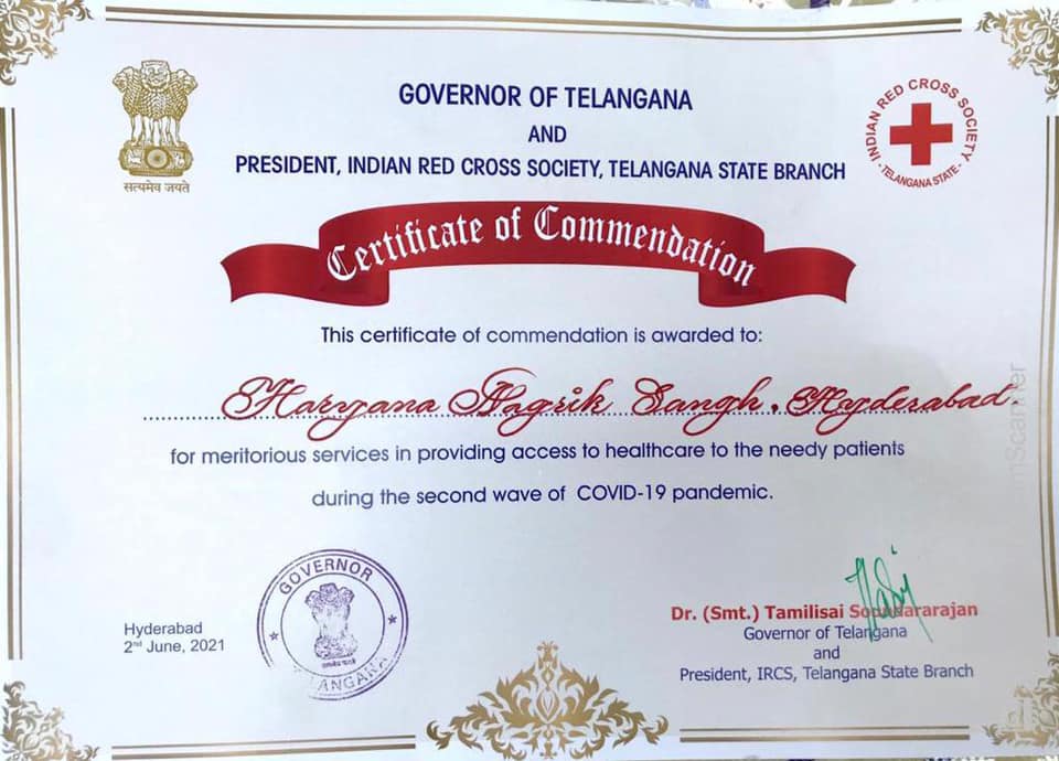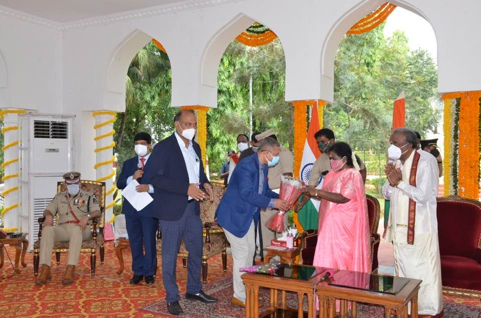 Haryana Nagrik Sangh donating Pandemic Relief Material to Honble Governor of Telangana & Lieutenant Governor of Puducherry at Raj Bhavan Hyderabad.